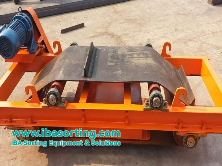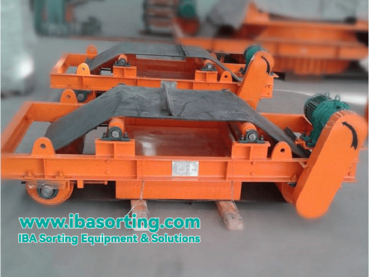 When the equipment is connected to the power supply, the excitation coil generates a high-intensity magnetic field. When the bulk material on the conveyor belt passes under the iron remover, the ferromagnetic material mixed in it is instantly sucked up. The adsorbed iron parts are thrown out by the continuously running iron unloading belt, and fall into the designated collection device due to gravity and inertia after getting out of the range of magnetic field, thus realizing the automatic and continuous removal of iron impurities.